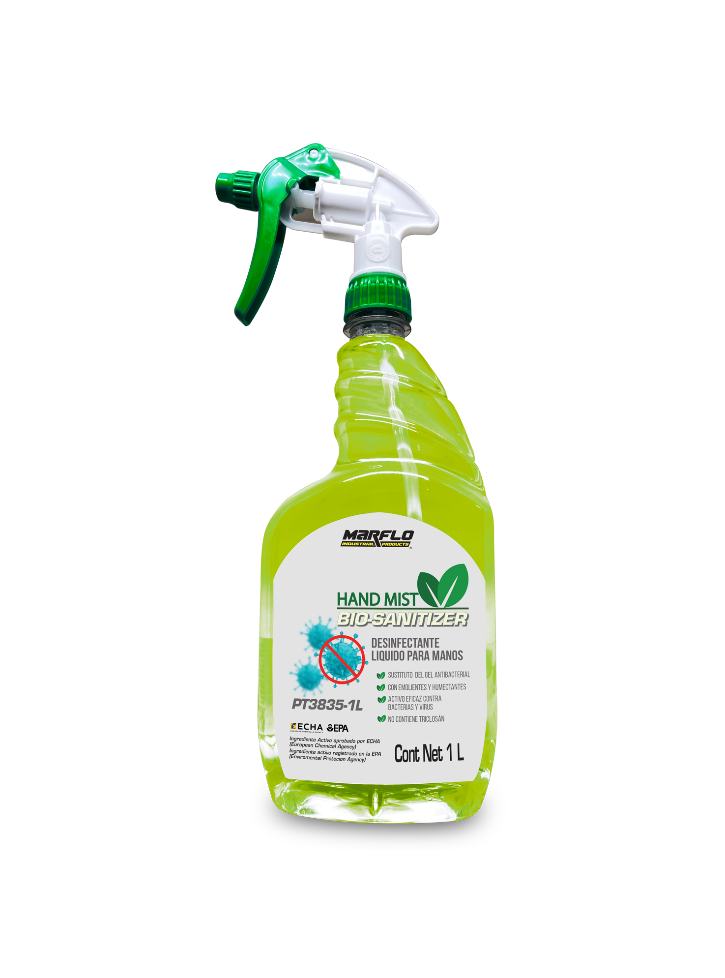 Excelente sustituto de gel antibacterial, con mayor acción germicida y carga residual.